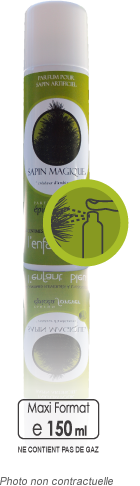 Principal produit de la gamme, destiné à recréer l'odeur du sapin naturel sur le sapin artificiel. S'adapte aussi au sapin Nordmann qui ne perd pas ses épines mais ne dégage aucune odeur.